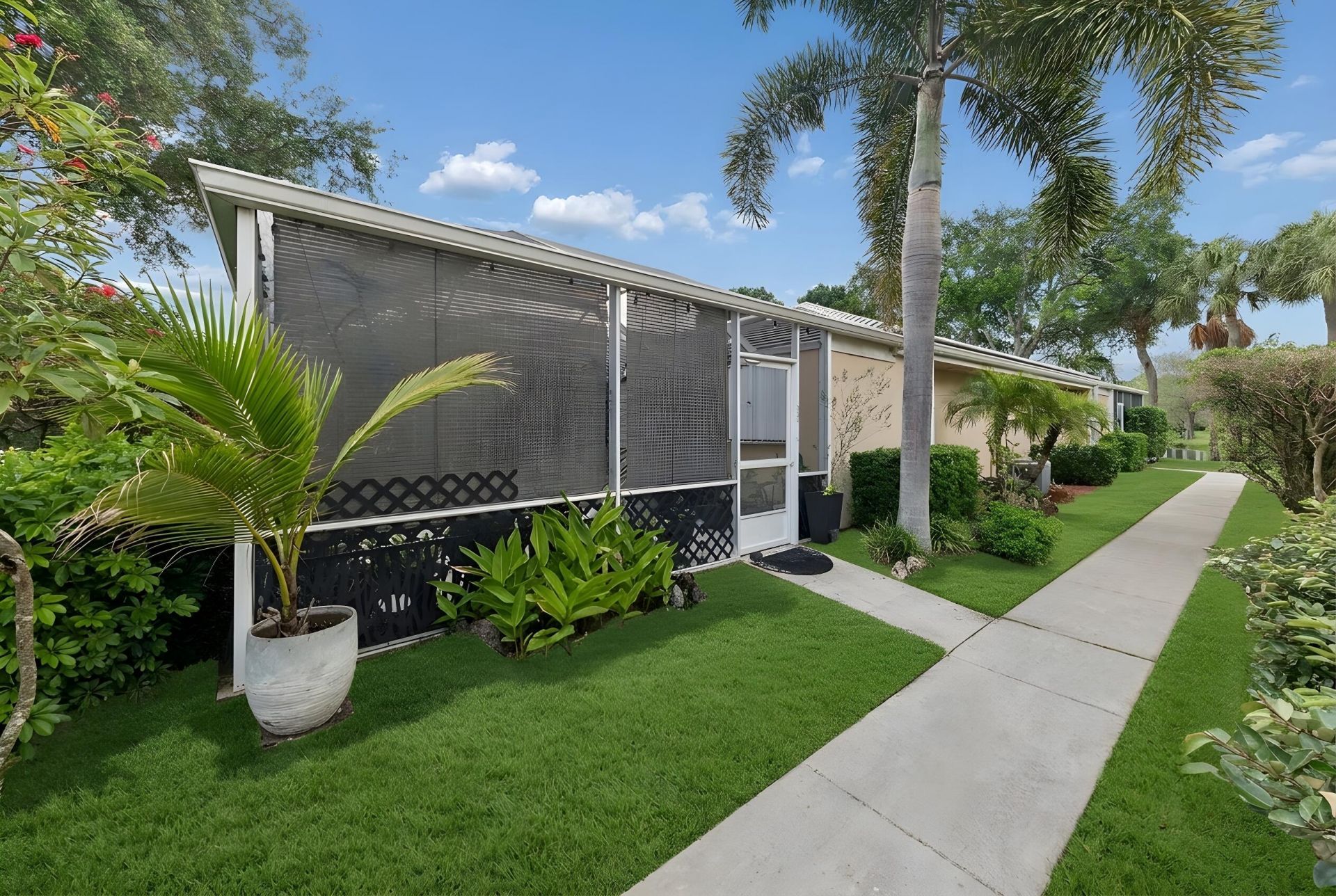 Spacious and bright 2/2 Villa with super large screened-in Lanai. Low HOA. Walk to the pristine community pool. Close to shopping and airports. New Convection stove, range, New refrigerator, New tankless water heater. Tons of closets.